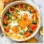 Baked feta eggs with tomatoes and spinach are not just a meal; they are a warm embrace on a plate, perfect for starting your day or enjoying as a cozy dinner. The combination of creamy feta, sweet tomatoes, and bright spinach creates a comforting symphony of flavors. Save this recipe to your favorite Pinterest board so it’s ready when you need a cozy treat!