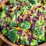 A creamy and crunchy salad perfect for summer picnics and family gatherings, featuring fresh broccoli, cheddar cheese, and optional turkey bacon.