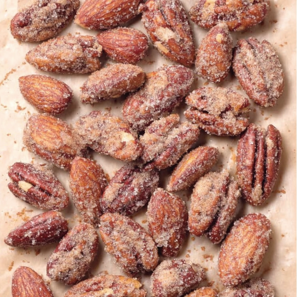 This recipe is one of my favorites because it’s incredibly easy and endlessly versatile. You only need a few pantry staples — sugar, cinnamon, vanilla, and egg white — and about an hour to transform plain pecans (or almonds!) into something absolutely irresistible. They stay fresh for weeks, making them perfect for gifting in jars, holiday parties, or your everyday snack stash.