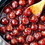 Tender meatballs coated in a sweet and spicy cranberry BBQ sauce, perfect for holiday gatherings or weeknight dinners.
