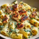 A warm and comforting bowl of creamy pasta with tender chicken and rich flavors, perfect for a cozy weeknight dinner.