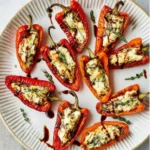 Creamy and savory goat cheese stuffed mini sweet peppers, perfectly roasted and drizzled with balsamic glaze. A crowd-pleasing appetizer perfect for any gathering.