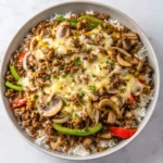 Keywords: Philly cheesesteak, meal prep, ground beef, comfort food, easy dinner