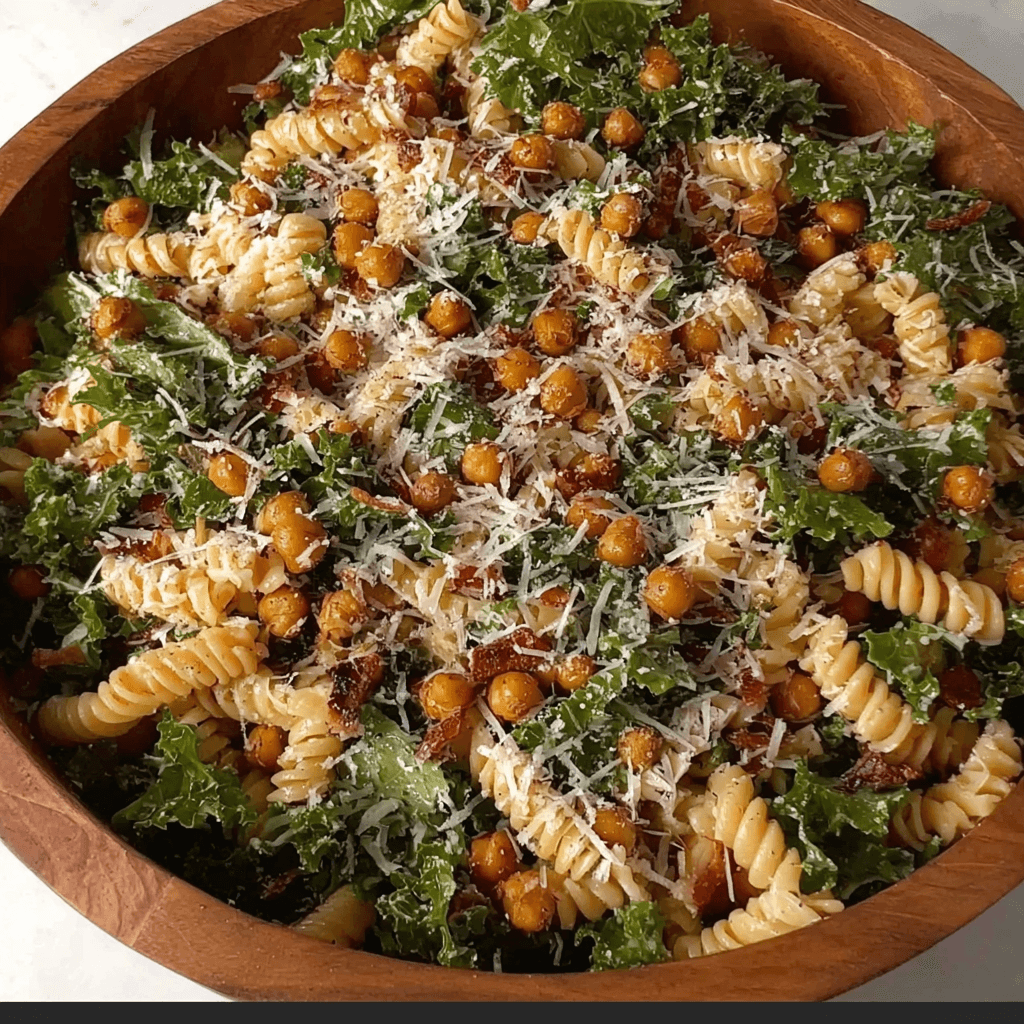 Kale Pasta Caesar Salad with Crispy Chickpeas 🌿