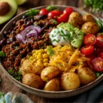 Keywords: loaded potato, taco bowl, comfort food, family dinner, easy recipe, customizable