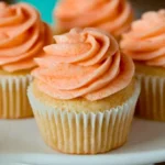 - Once the cupcakes have completely cooled, frost them generously with the peach cream frosting. To add a lovely touch, use a Wilton 1M piping tip to create an attractive swirl.