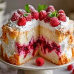 Keywords: angel food cake, raspberry cake, dessert recipe, baking, sweet treat