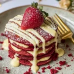 Deliciously fluffy red velvet pancakes perfect for cozy mornings or special brunches.