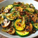 A cozy side dish featuring sautéed zucchini, mushrooms, and onions that brings warmth and flavor to your meal.