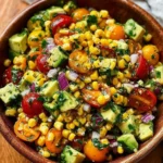 A light and refreshing salad featuring sweet corn, avocado, and cherry tomatoes—perfect for summer gatherings.